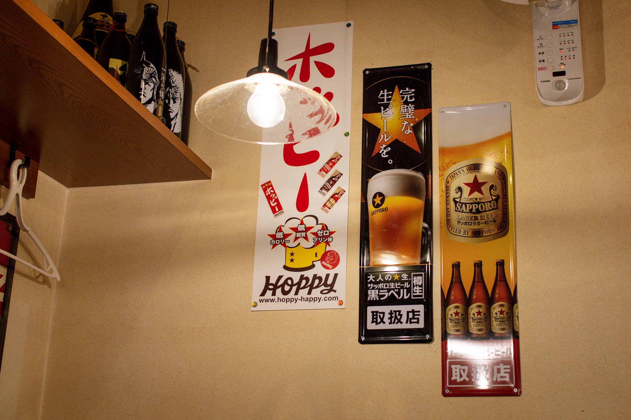 벽에 삿포로 맥주 포스터와 함께 홉피(ホッピー) 포스터가 붙어있다.
