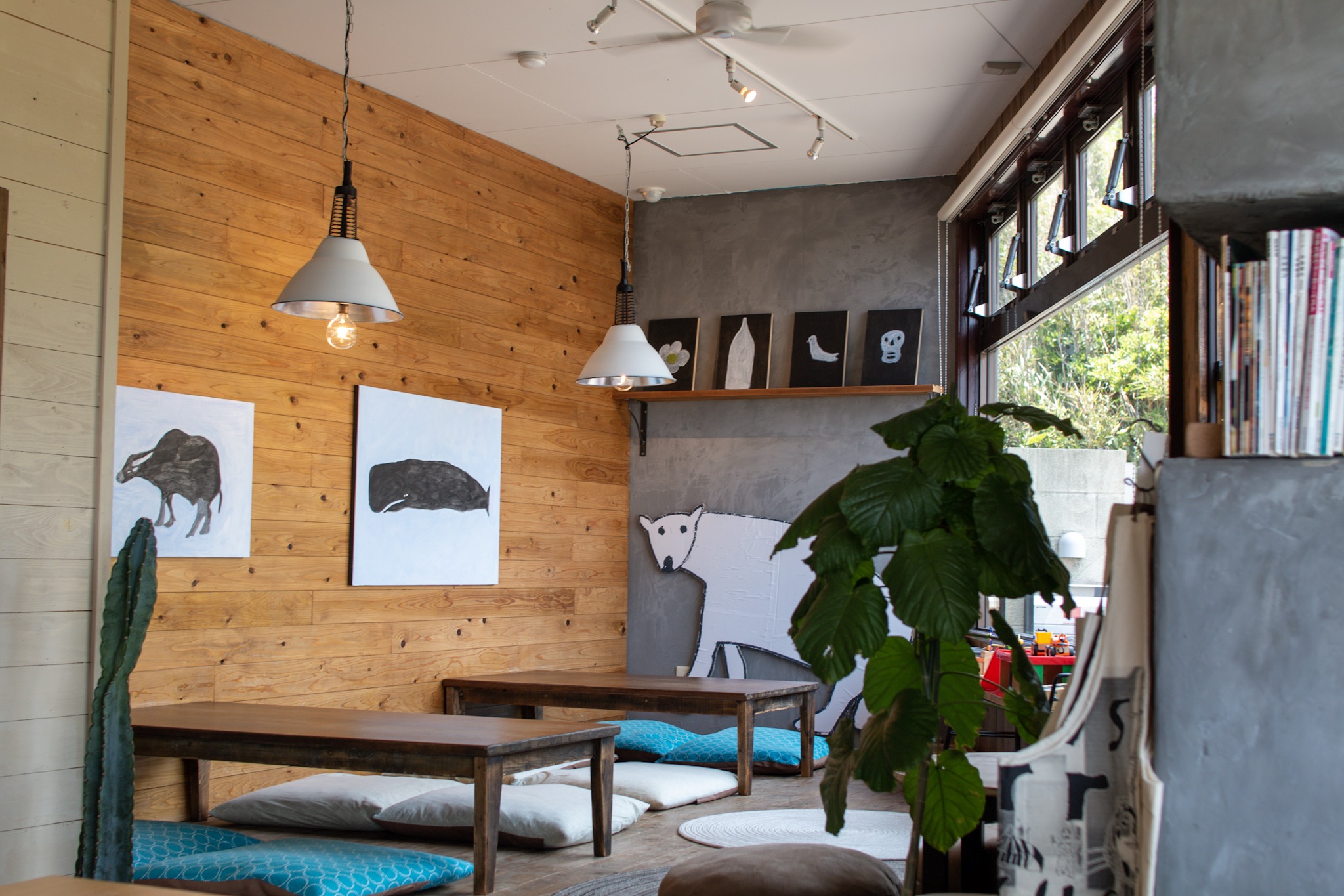 바다 근처라서 그런지 커다란 고래 그림이 천장에 달려있었습니다. 비록 사진은 찍지 못했지만 재밌고 좋았어요.