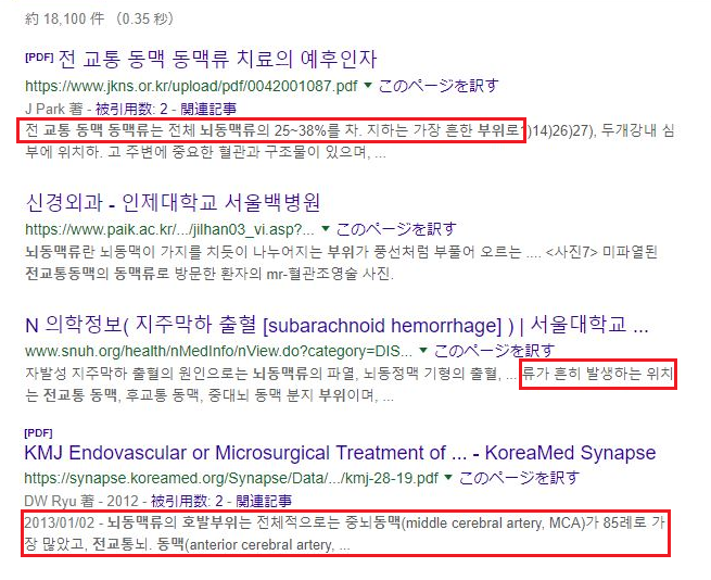 부디 많은 분들이 저처럼 전문 병원에서 사진을 보고 판단하는 과정에서, 동맥류가 아니라는 얘기를 들으셨으면 좋겠습니다. 정말요.